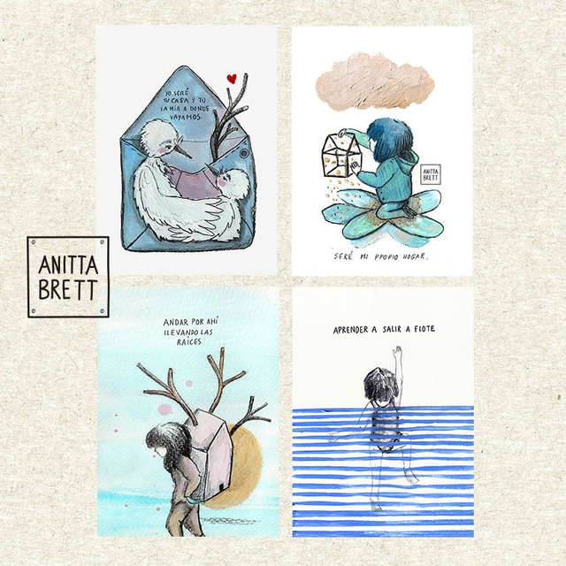 Recibirás 12 postales bellamente empacadas. papel de 300 grs. Algodón. Diseñadas y escritas por Anitta Brett.